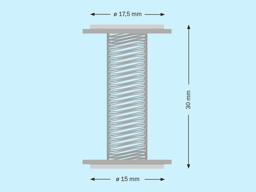 Deko-Spring, Spezialfeder 30 mm lang, mit 17,5 mm PE-Schaumklebepunkt und 15 mm Reinacrylatklebepunkt lang, mit 30 mm Deko-Spring, Spezialfeder