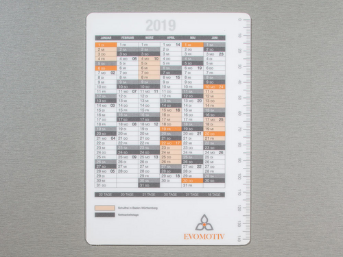 Tischkalender, Taschenkalender oder Wandplaner - eine Laminierung wertet den Kalender optisch und funktional auf. So können Sie ihre Termine beispielsweise mit einem Whiteboard-Marker übersichtlich und jederzeit sichtbar strukturieren. Sollte sich etwas ändern, wischen Sie es einfach weg und korrigieren Ihre Eintragung. Laminierte Taschenkalender passen in jeden Geldbeutel und im Winter kann die stabile Ausführung mit dicker Folie auch als Eiskratzer dienen. Durch eine reißfeste Lochung im verschweißten Rand der Laminierung ist das Aufhängen ein Kinderspiel.